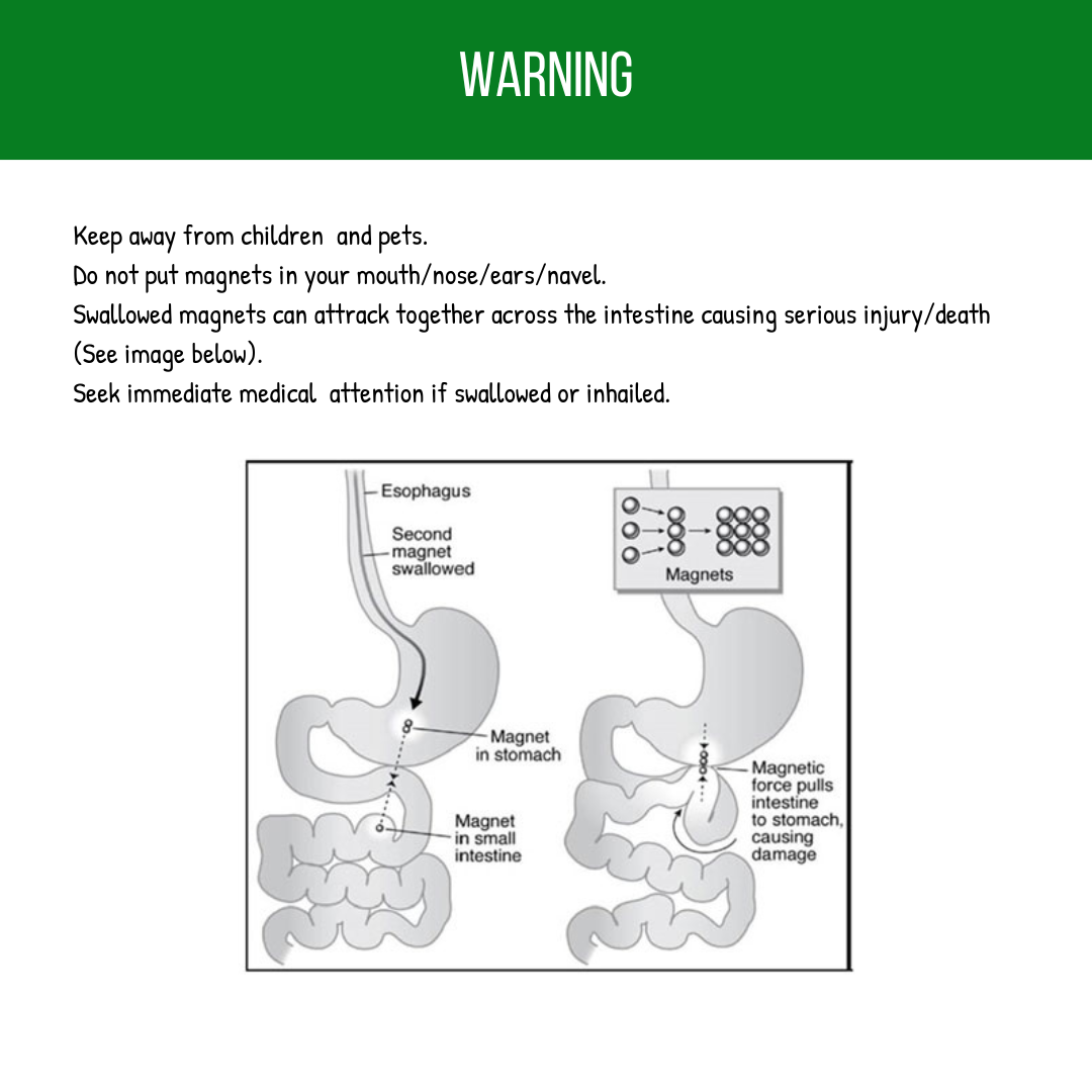 Ingestion Hazard: Keep away from children. Swallowing magnets can cause serious injury or death.